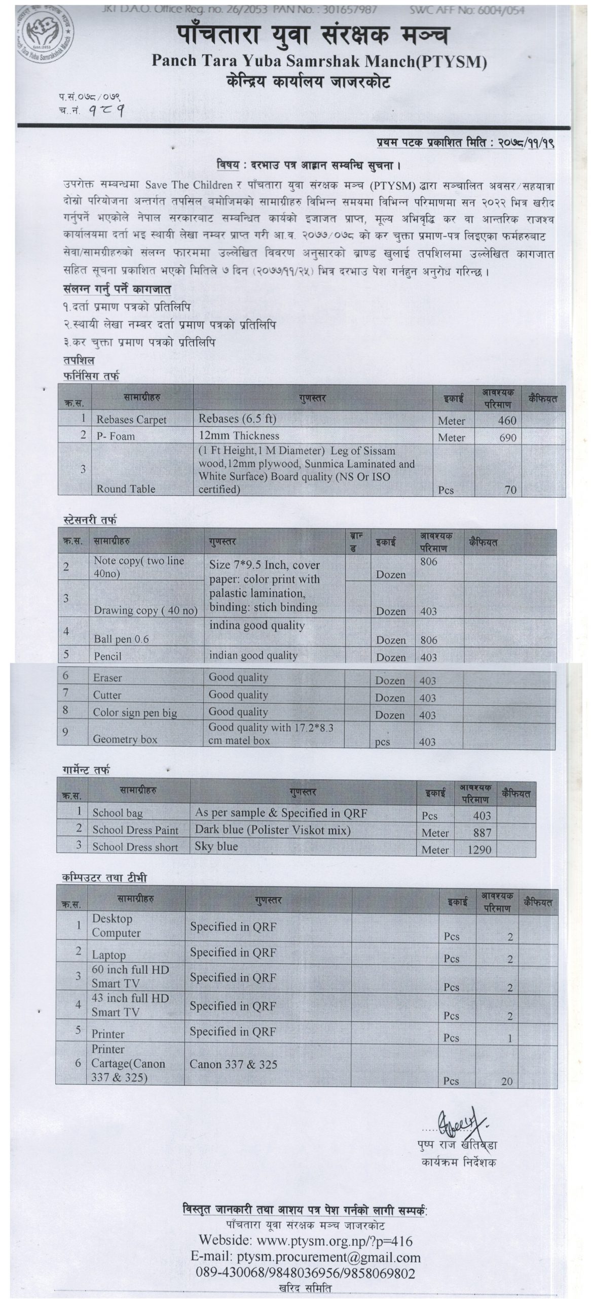 समाग्री आपूर्तिको लागि टेन्डर आह्वानको सूचना